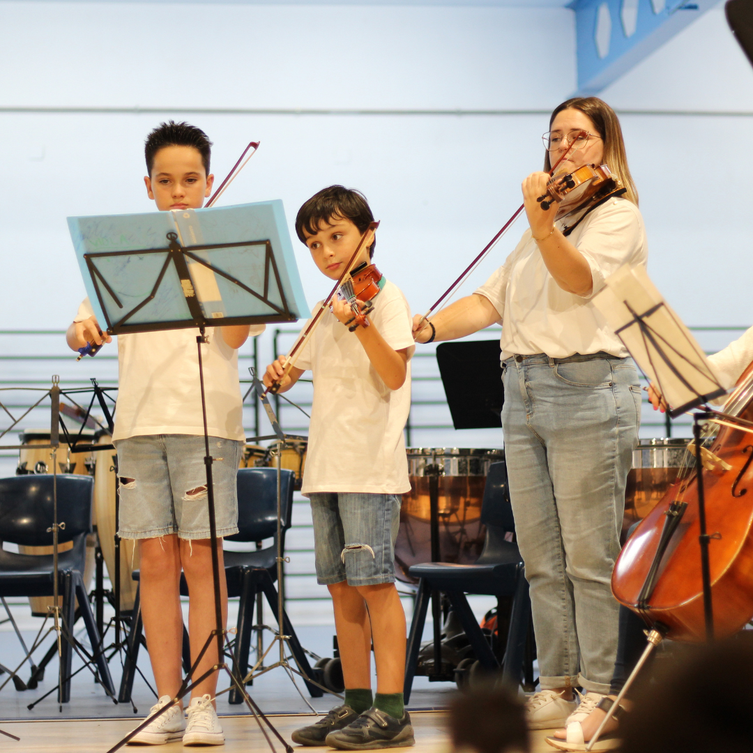Desde pequeños, nuestros alumnos aprenden a tocar en grupo, coordinarse, seguir al director y dominar la actuación en directo.