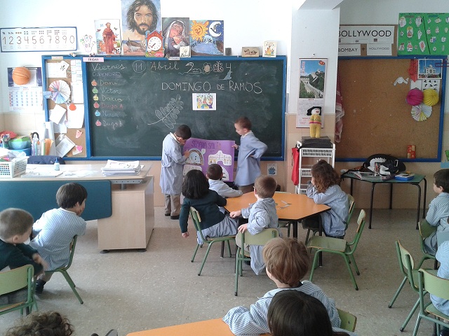 Algunos de nuestros alumnos de infantil 5 años, preparan material sobre esta Semana tan especial para los cristianos, y comparten su conocimiento con el resto de sus compañeros de Infantil, desde los 3 hasta los 5 años. Sin duda alguna, toda una experiencia, ¡¡¡¡¡profesores por un día!!!!