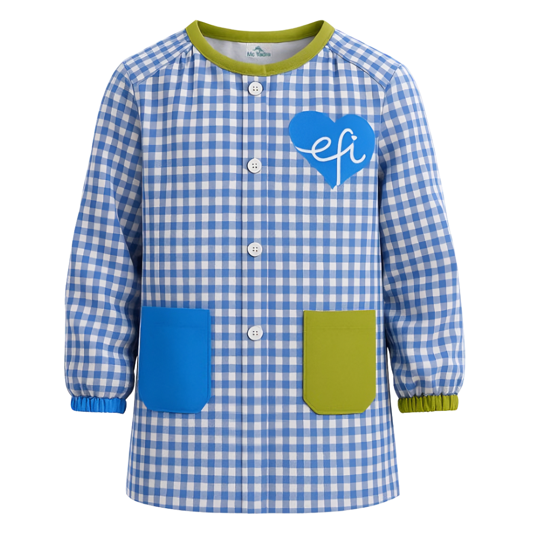 El Babi Botones es una prenda obligatoria para Educación Infantil y Primaria durante su jornada escolar. Diseñado con practicidad y comodidad en mente, este babi de manga larga protege la ropa de los niños mientras juegan, pintan o realizan cualquier actividad en el aula.
