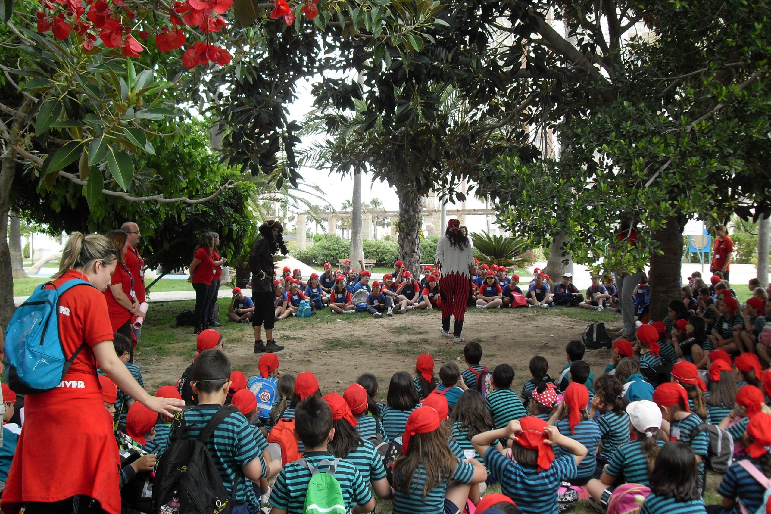 Los alumnos de 1º y 2º de Primaria llegamos a Cullera. En primer lugar, nos vestimos de piratas, con nuestro pañuelo en la cabeza, nuestro parche y nuestras cicatrices; visitamos “La Cova del Dragut”. A comer, nos fuimos al “Parque de los Patos” y más tarde, hicimos diversos juegos y danzas, además de nuestra bandera pirata. Finalmente, descubrimos un tesoro y muy contentos volvimos al cole.