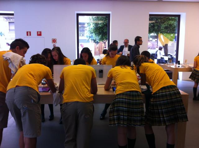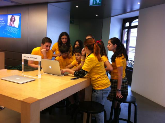 En la propia Apple Store de la C/Colón, nuestros alumnos, junto con la ayuda de monitores especializados en la tecnología Apple, realizaron una serie de talleres que consiguieron captar su atención y en los que de una manera muy intuitiva, sencilla y lúdica, por equipos, aprendieron a generar contenidos audiovisuales.
